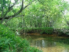| テーブルの上には空の5合酒パック&缶ビールが・・・ どうにか二日酔いじゃないけど、ダルいのでお風呂へ直行! ふーっ、さっぱり! そして、ゆっくりホテルをチェックアウト さあ、今日は湯川で大人の釣り?を楽しむのだ(喜)! ちょっと道が混んでるけど、久々のいろは坂! がんばったけど5分遅刻で、8:35湯滝Pに到着 見渡してもへちいさんの車はありません・・・ 挙動不審者のごとくキョロキョロしてたら 先にTSURUさんが自分を見つけてくれた! さらに遅れること10分?へちいさん登場! あれれ、こっち来ないな?、誘導のおじさんに邪魔されてる(笑) とりあえず全員集合!ってことで漁券を購入しにいくと 『今朝、熊出たよ』だって・・・ 3年位前もここで遭遇したことあるのに、嫌だなぁ そうこうしてるうちに、木道を下り目的地へ さっそく釣り始めると、TSURUさん、へちいさん共にヒットしてる やっぱ凄げぇな、この2人は! しばらくして、下流へ行ったTSURUさんと合流し木陰で一服 目の前で、トンボにライズするブルックを見ながら談笑・・・ うーん、大人! でも、あまりに見事にライズしているので、TSURUさんが・・・ 一発でヒット! きれいなブルックです。いいなぁ・・・ 今度は上流でライズを繰り返す奴に、自分が挑戦 12♯のカディスじゃ全然出ません 18♯のモスキートに交換して数投、やっと出た! こいつもきれいだ(喜) 釣りに夢中になっていたら、雨も降り出し、車へ非難 で、雨が小降りになった頃、テーブルを広げてビールで乾杯! 少しして、釣三さんも合流です(喜)! しかし、せっかく釣三さんが来てくれたのに、また雨が強くなってきた でも、まだ飲んでるし、誰も動こうとしません・・・ うーん、大人!? しばらくして、雨もあがり後半戦へ 自分は釣三さんにくっついてお勉強 後から観戦してると、釣り始めていきなりヒット! しかもたて続けに釣ってる。 凄いや!! 同じような所を流しても自分には出ません なんでだろ・・・ 自分は殺気が出てるのかな? または体内のアルコールが、水に溶けて魚が逃げちゃうとか?(笑) 結局、釣三さんの前で釣る事が出来なかったけど なんとか5匹追加し、納竿 やっぱり大人の釣り?は良いですねぇ また皆さんと来たい(飲みたい!)な! |