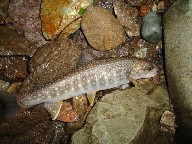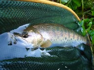 | 連日の寝不足で体がきつい・・・ なので、ゆっくり?5:00起床 今日はETCの割引が少ないかな? なんて宇都宮ICを通過すると・・・いつもと同じ半額じゃん! あぁー勘違い、禁漁まではゆっくり出発しようっと で、本日の目的地は、山奥の沢 3つ続いてるので何処かは入れるだろうと、のんびり8:00到着 でも、初めの2沢は先行者と工事 最後は牧場?の方まで登ってたけど、沢が細すぎるので探釣せず どうしよう・・・ 迷ったあげく、増水時に良い?って聞いた川の上流に変更 今まで2回位下流に行ったことがあったけど、いずれも完敗 ところどころ先行者?の車もあったけど、橋の袂が空いているので入渓 天気も快晴で超気持ち良い!って、いきなりヒット! でも、幸先良いと後が続かないんだよね・・・ やっぱり今日も後が続かない 反応はまずまずだったけど、貧果3匹 おまけにちょっと転倒(笑)して、腰が・・・ 次は、チョビひげ沢 入渓場所をいつもより下流にしようと、超急斜面を下っていくと川に合流 なんか、上流の滑床と違って良い感じ! でも、ほんとに同じ川かな? 辺りは薄暗いし心細い・・・ 3匹釣った所で、あまり反応が無くなったのでちょっと一服 んーっ、 気が付くとそこら中に木の実の欠片が散らばっている 怖いので撤収!・・・今来た超急斜面を戻る ぜぇぜぇ、 おぇーっ、 腰、痛ぇー! 近道だと思って手前の沢を登ったら、帰り道まで間違えて退渓出来ない! 車まで1時間以上もかかっちゃった(涙) 次はちゃんと踏破しようっと 最後はいつもの川へ 腰がまだ痛いので、下流の平坦な場所を選択 こちらもえらい増水だけど、一発ヒット! うひゃー、引く引く、でかいよ! ジャンプだ?・・・ニジマスだ! まぁ良いか、久しぶりの良い引きは結構楽しい! 暗くなるまで小一時間、4匹のニジマスに遊んでもらい退渓 そろそろニジマス(管釣り)の季節か・・・ |