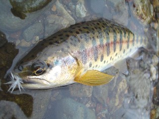 今年はどうしようかな?って思っていたいつもの川へ・・・ やっぱり今年もお世話になります(笑) なんてったって、渓流釣りの楽しさを教えてくれた川だしね 年券を購入し、早速入渓♪ 時期的にまだまだと思うけど、ドライで釣り上がります 思ったとおり厳しいけど、なんとか3匹! 内2匹はひれピン(喜) でも、解禁直後なので所々魚のはらわたが散乱してる・・・ 魚をキープするのは賛成だけど 乱獲はやめて欲しいな・・・ 次は名前の知らない用水路へ あれっ、先行者!? 先日も居たけど、こんなところにも餌師が来るんだね あらら、良型釣っちゃってるし〜 困ったな・・・ じゃ、帰りがてら里川に行こう って、川に降りようとしたら、人の気配が・・・ またまた先行者! しかもFFマン2人・・・ ん〜っ、1人は髪の毛が長いね? 女性?? 他人の恋路をジャマすると・・・ って言うので、今日は撤収! |