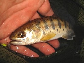 | 今年のGWは会社の本社移転の為 引越しやら整理やらで短い・・・ そんな中、無理やり2日もらって福島県へ! まずは、たくさん釣れたっていうM川 前日に雨が降ったのか、所々地面が濡れているけど 爆釣を期待して実釣開始(喜) ・・・が、予想に反して全く釣れない。反応すらない(悲) 結局、半日頑張って完敗! 途中、出会ったおばさんに 『背中の網で掬った方が早いんじゃないの!?』と言われる始末 いじめたシマへびの崇りか? で、完全に予定が狂ったのと、自信喪失で放浪の旅へ〜 夏井川支流のS川を釣り上がると、FFマン数人がOLM中! 木戸川を目指していたら道に迷い 地図にあった道は行き止まり♪ 道を聞いたお婆ちゃんは『おらぁ、わがんねぇ』・・・ もう大変〜 最後にたどり着いたA川で、やっとヤマメ1匹・・・ 近くの露天風呂で疲れを癒してもらいました(笑) 福島県とは相性良くないのかな? |