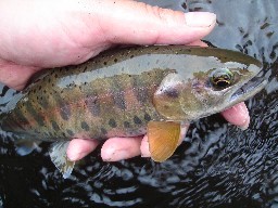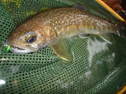 | 栃木の渓2006、最終釣行2日目 早朝から、ホテルで天気予報をチェック 明日は雷注意報か う〜ん、今日が最後になりそうだなぁ・・・ 今晩は車泊の予定だったけど、妻の実家に寄って そのまま、敬老の日を皆で過ごそうっと じゃ、最後は何処へ行こうか・・・ 結局、選択肢が少ないのでチョビひげ沢へGO! ガッツコースを選択も、反応がすこぶる悪い おかしい・・・ 昨日、釣り人が入ったな? しょうがないので、テンポUPで釣り上がると 上流から物音が! ・・・ヤバイ!? ありゃりゃ? 餌釣師2名が降りて来た! こんな細い沢で、釣り人に遭遇するなんて初めてだよ 昨日からツイてないなぁ・・・ 2人に話し掛けてみると、20年も通っているとのこと(驚) おまけに、最近 下流で熊の足跡が有ったみたい・・・ ※あとで、『熊出没 注意!』の看板発見(恐)! 結局、今までで最低の釣果 5匹(悲) 次は、いつもの川へ 増水気味だけど、がんばって釣り上がりますが無反応(哀) まぁ 最後なので、このまま納竿してもいいかな? なんて思ったけど、なぜか帰りに里川を見ると・・・ イイ感じ!! こんな春のポイントは誰もやらないだろうし 抜かれて、魚も居ないだろうなぁ・・・ なんて、適当にカディスを流すと予想外のヒット(喜) まん丸のヤマメ 24cm! その後も、26・27cmと続けてヒット♪ 最後は、ライズしていた18cmを仕留めて終了〜 終わり良ければ全て良し! これで気持ち良く帰れます・・・ さよなら、栃木の渓 2006 きっと来年も、たくさん遊びに来ます |