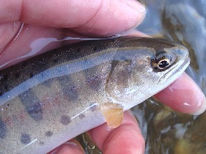 | 家族で訪栃2日目 例によって、自分だけ早朝釣行(喜) でも、さすがに寒いっす とりあえず、N川の状況が確認したくって 山を登ると・・・ 辺りはまだ、冬の装い!? で、水温を計ると 6℃ かなり厳しそう・・・ まぁ、釣れなくても仕方ないので 目の前の淵から開始します ・・・無反応っす・・・ 何度流しても、無反応っす・・・ 試しに、ニンフに換えたら 一度、引っ手繰るような反応が有っただけ(悲) 完敗です・・・ 下流から餌師が上がって来たのもあり 次の川へ 時間も無いので、いつものM沢?へ行き そっと川面を覗くと・・・ こちらもライズが有りません(涙) かなり 『ボ』 の可能性が高くなってきました・・・ とりあえず、タンポポなんぞ撮ってみました・・・ やっと、ヤマメが釣れた〜(嬉)♪ |