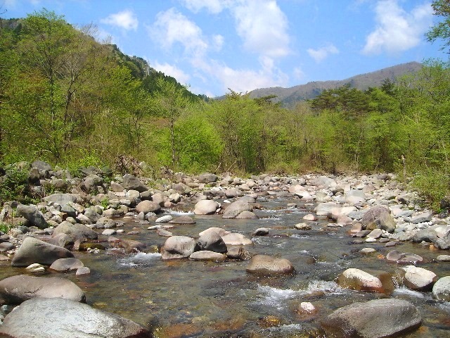 | 約40日振りの釣行♪ 4月は忙しかったのもあり、管釣りとチョイ釣りが2回だけだったので、久々まじめに?訪栃しました! GW後半、早朝からの渋滞が予測できたので AM5:00から出撃〜 それでも東北道は渋滞してましたが、栃木ICまでは何とか・・・ 目的のK川にAM8:00頃到着 天気は超快晴! すごく、気持ち良い〜♪ これだけでも、寝不足で来た甲斐がありました(喜) で、先行者の車は・・・無い様子! まぁ、嫌でもそのうち頭ハネされるんでしょうが、今日から2日間どっぷり栃渓を楽しむのだ(笑) |