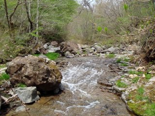 | しかし後が続かず、N川へ | イワナの渓相?ですが、ヤマメの方が濃いみたい |