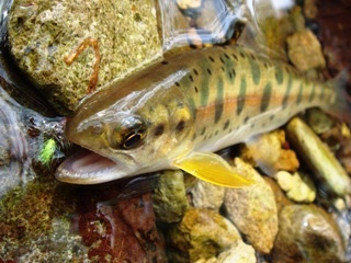 | とりあえず、去年同じ時期にやった川へ | 同じポイントで、同じく2匹(喜) |