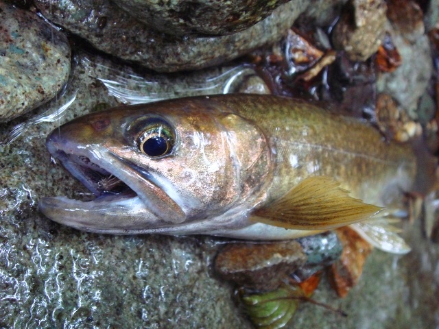 上流を確認する為、かなり大雑把に釣り上がりましたが、27cm×2匹を含むまずまずの釣果♪ 途中でタイムUPも、まだ先がありそう・・・ 禁漁まで、あと2回は来たいなぁ〜 |