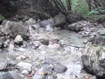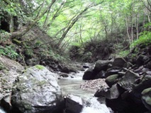 | 途中いろいろな沢&川を見ましたが、ポイントごとに先行者&増水! ホントに今日は平日なの? このままだと 『ボ』 確定なので、ダメもとで小雨降るイワナ沢へ・・・ |