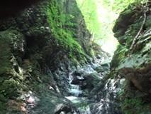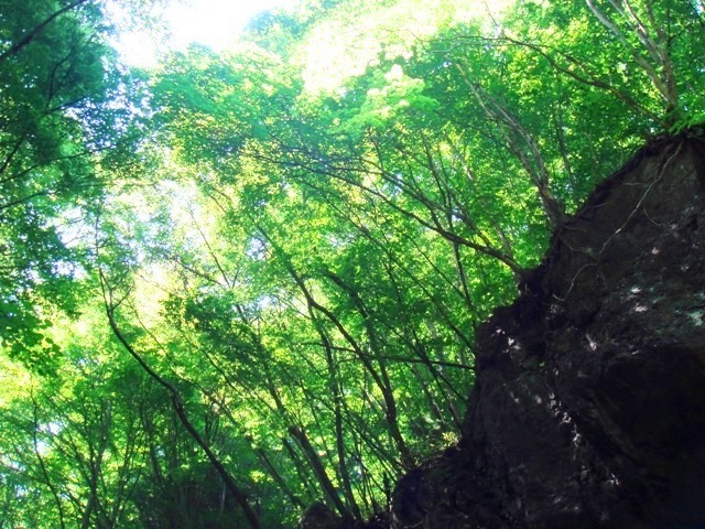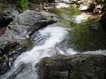 下りは膝に負担がかかるので、手頃な棒きれを杖にしながら脱渓ポイントまで川通しで降ります(大汗) 次は登りで、ゼェゼェしながらやっと最後の難所へ! |