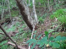 | まずは前回の取り付きより楽な所を探してみるも、約30分のロス 次は、崖の頂上から渓への下降地点が楽な所を探し、約60分のロス 結局、両方とも前回のルートで登り降り・・・ もうこの時点で、半分戦意喪失です(不笑) |