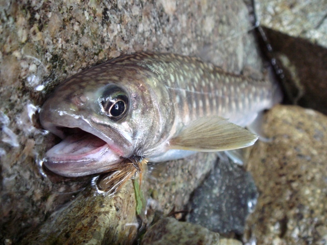 | こちらもスレスレ・・・ フライ着水と同時に一目散に逃げるイワナを数匹目撃する羽目に(辛) |