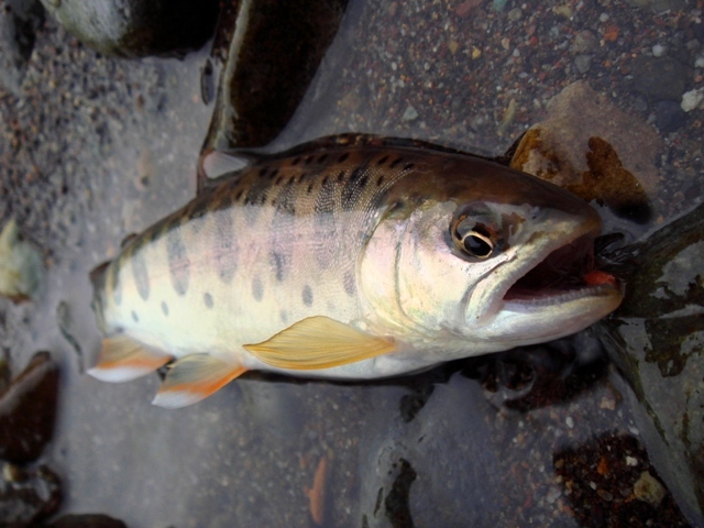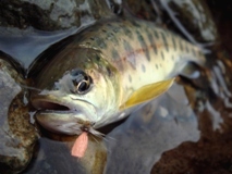 | キレイなヤマメ♪ | ちょっと増水気味・・・ | 朱色が堪りませんネ(嬉) |
