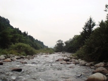 | 栃渓もあと僅かというのに、冴えない天気が続きます・・・ なので、チョイ釣りで数を回る作戦を決行! で、はじめに怖い川でフリフリしましたが、ヤマメ×1匹のみでイワナはスレきっておりました(涙) 結構良い型が居たのに・・・ |
