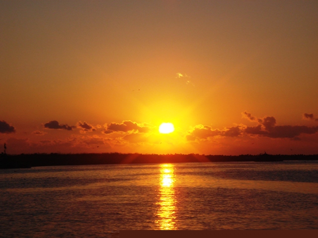 | で、極寒の中フリフリしますが、生命反応ゼロ・・・ そうこうしているうちに、九十九里の海岸線に太陽が昇ります♪ |