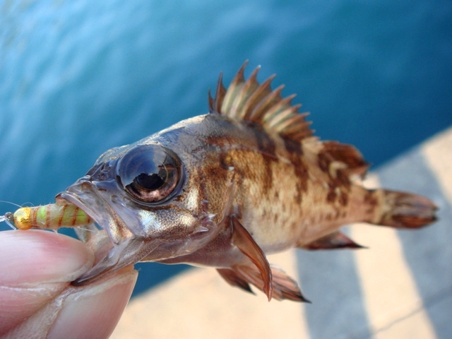 | 初メバル♪ お次は、美形の初シーバス(セイゴ30cm)!!! |