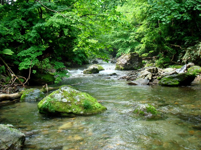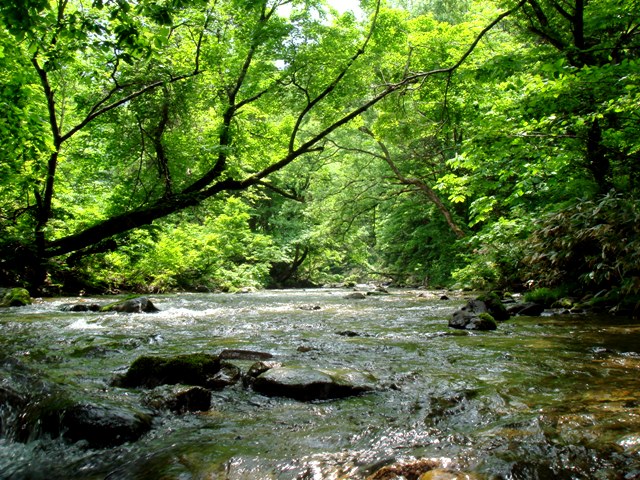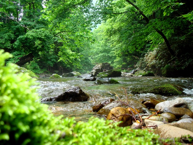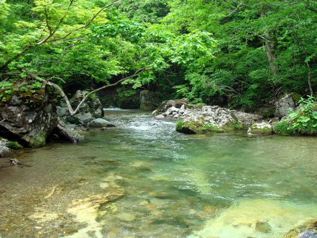 | 2005年にへちいさんとチョビひげさんに連れて行っていただいた渓を、再訪です♪ 深夜1:00に出発して、休憩1回、翌朝8:00にやっと渓に立つことが出来ましたが 天気予報も微妙で、小雨交じりの寒空です・・・ |