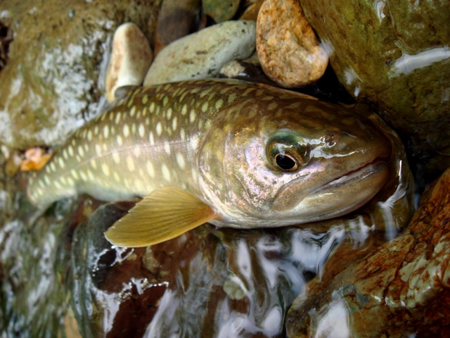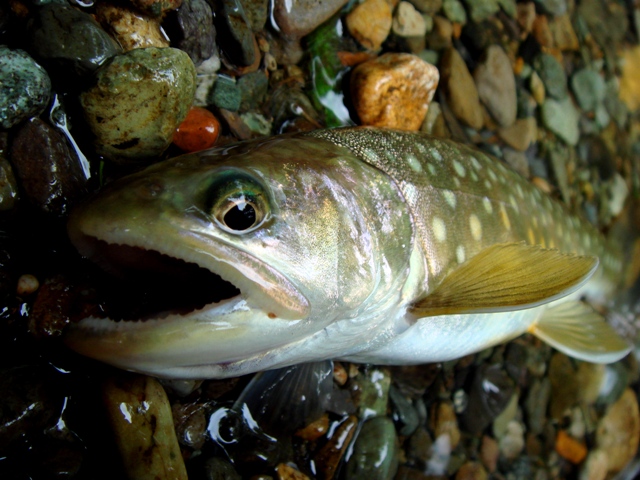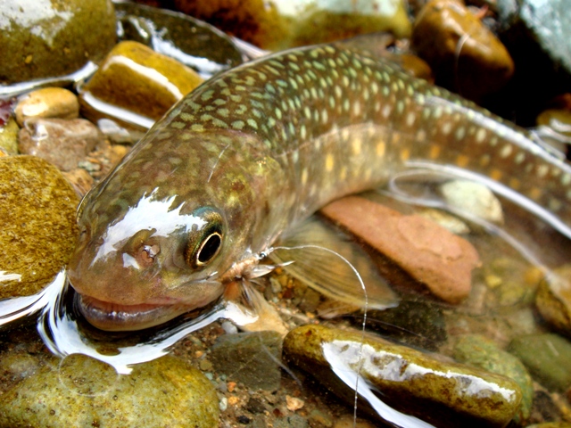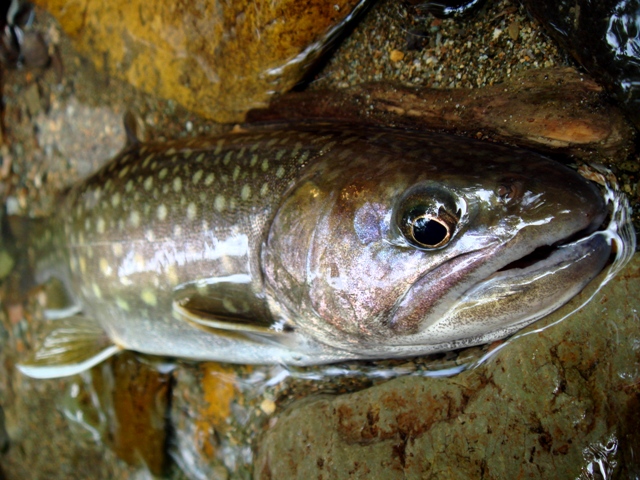 | 水温10℃で、目立ったハッチが有りませんでしたが・・・ 元気なイワナが出てきてくれました(喜) |