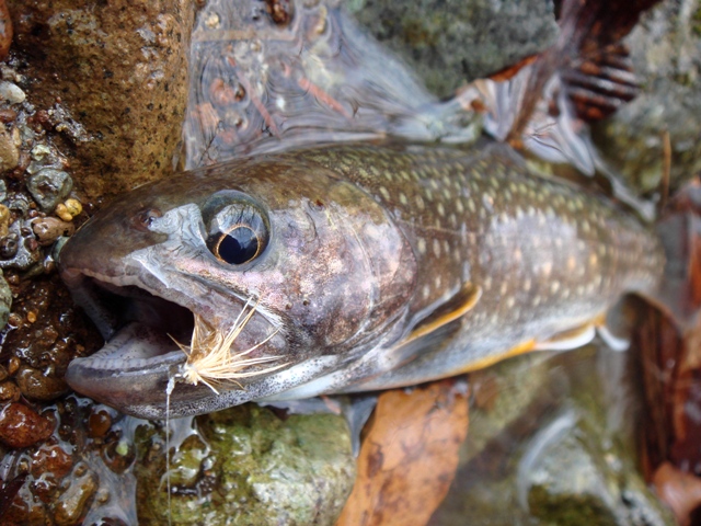 滅多に釣り人に合わないのに、いきなり2人が釣り下って来ました(餌) 超マイナーな沢なのに・・・ |