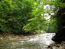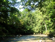 翌日・・・ 60kmほど移動して、初めての渓へ! 車の後ろにアブの大群がついてきて、ドアが開けられませ〜ん(怖) |