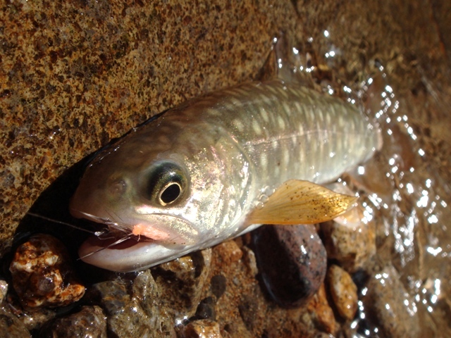 | 型は小さかったのですが、♯12に果敢にアタックしてきます♪ お腹がポッコリしてたイワナが多かったので、抱卵してたんでしょうか? |