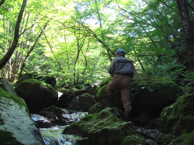 | 初秋の沢は、まだまだ緑がいっぱいです で、angler002さんは・・・ |