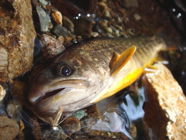 | 小さい沢でも、たまに良型が釣れる・・・ コレがあるから、自分は沢が好きなんでしょうネ♪ |