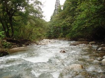 | というのも、数日前に記録的な大雨があったらしいのと 当日も1日中ポツポツ雨が続いてて、どこの渓も濁流と化してたので・・・(涙) いやぁ、事前の調査って大事ですねぇ・・・ |
