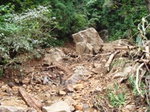 | やっぱり、林道は所々崩壊&崖崩れで酷いものでした・・・ | ||
