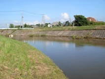 | 車の室外温度計は一時31℃まで!? で、いろいろ迷走したあと、やっと釣りで来そうな水路を発見♪ |
