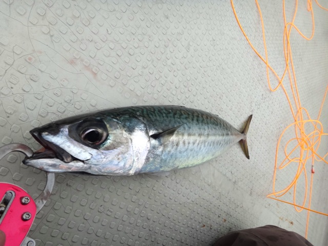 | それでも2匹の尺上サバが遊んでくれました(嬉) 青物で♯8がギュンギュンです♪ |