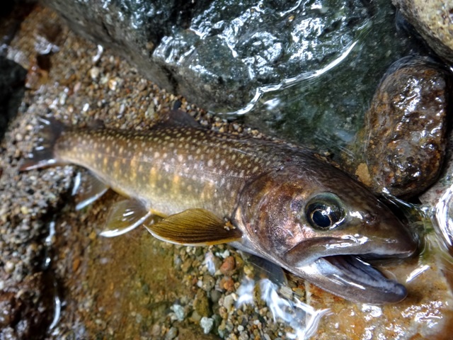 | しかし渋いですねぇ 1回見に来て、喰い付かなかったらそれっきり!? 腕の所為だと思いますが、イワナらしくないですね・・・ |