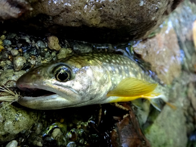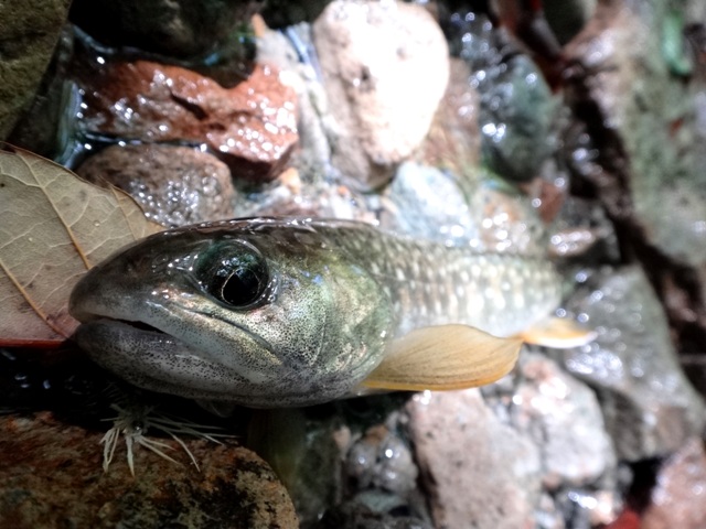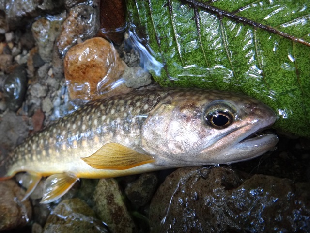 | 水たまりや、水深10cm未満のチョロチョロ細流でもイワナ達は健在でした(驚) 場所によっては、ひとつの水溜りに複数のイワナが!? 1・2年魚らしい稚魚の群れも見れたので、2・3年後が楽しみ♪ |