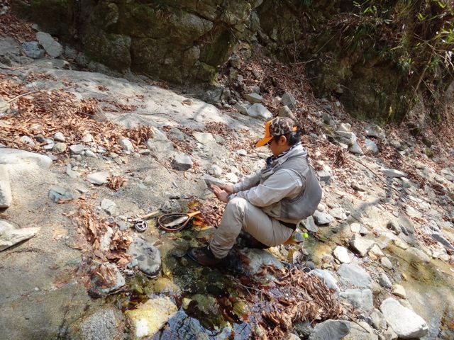 で、GW〆日にお付き合いして頂いたのは、エキスパートのkomさん(嬉) 竿抜けポイントを的確に見極め、ポコポコ釣り上げます〜(凄) |