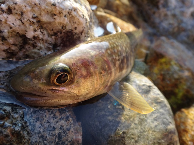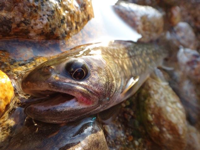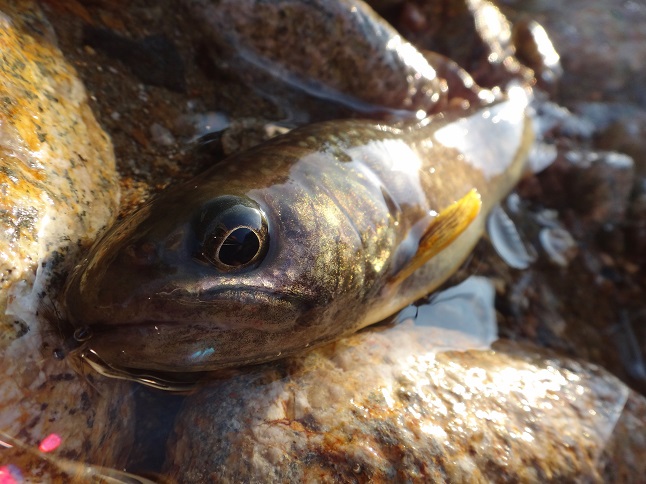 沢に降りると、増水ながらも釣りが出来そうなカンジで・・・ なんとかちびヤマメ達が釣れてくれました(笑) がっ、このままでは画像に収める被写体に出会えそうにないので以前お邪魔した沢に・・・ でも、こちらは砂防堰堤建設中で重機が走ってました(涙) またまた移動して・・・ |