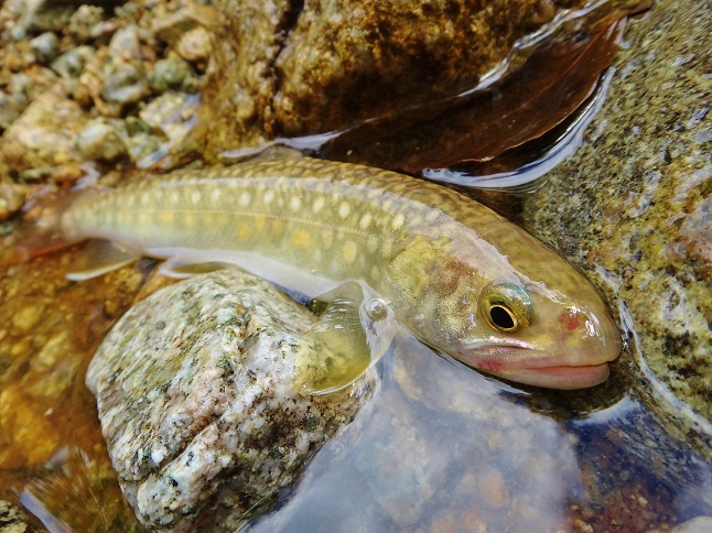 お次は昨シーズン尺ヤマメを釣った渓に大移動しましたが、台風の大水?でポイント消滅(涙) せっかくのひとり旅なのに全くツイてないっす・・・ で、最終日はフリフリする予定ではありませんでしたが、昔良い思いをした懐かしの福島の渓を1時間ほど歩き・・・ |