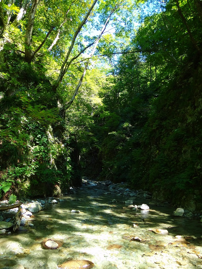 いきなりクマさんの糞が鎮座してて正直ビビりましたが、渓相はGOOD(喜)!? 倒木の山を乗り越え、滝を巻き、チョイ冒険気分♪ |