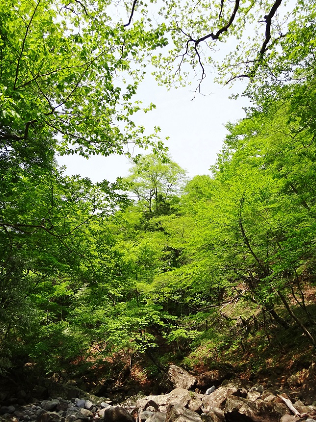 最近、歳の所為か土曜の朝が辛いんです・・・(老) おまけに初めての沢だってのに9:30着! とーぜん、先行者の車があります(汗) がっ、所詮初めてなので調査を兼ねて入ってみました〜 |