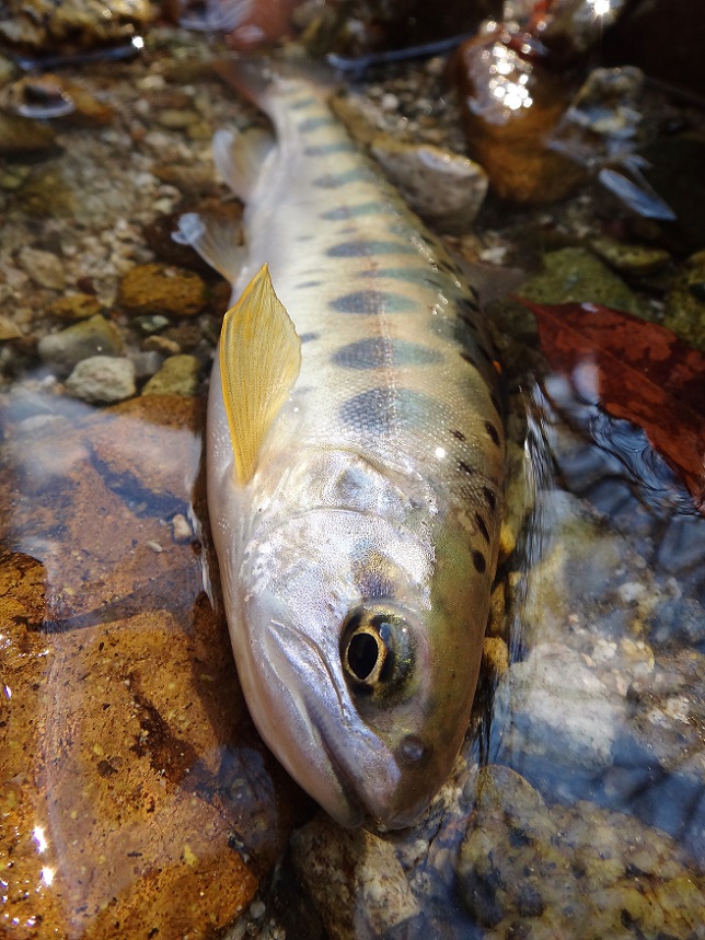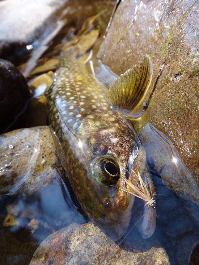 ナメがキレイな沢で、山形タイプ?のイワナに逢えました(喜)