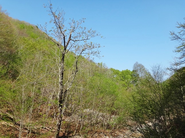 やけくそで投じた♯10のカディスであっさり!? 今季初尺上、♂の31cmでした(嬉) で、初日は31匹と大満足で〆 2日目 ちょっと足首を痛めたみたいなので、早朝もゆっくり温泉♪ のんびり平坦な沢が良いなぁ・・・ って、行く先々に釣り人の車・車・車!?GWをなめてました(汗) |