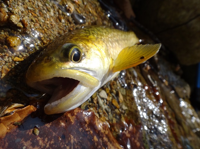 反応が薄かったのですが、27cmと黄金イワナが出てくれて一安心(喜) |