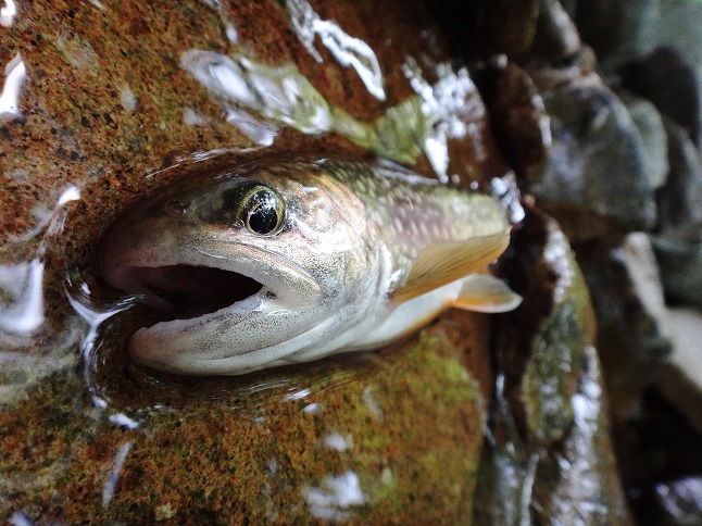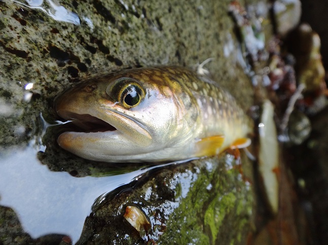 こちらは渇水で警戒心が増したイワナばかりでしたが、ぼちぼちイワナ♪ |