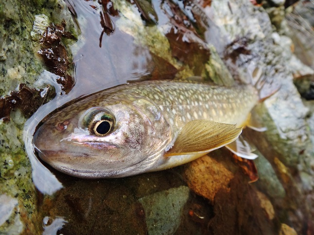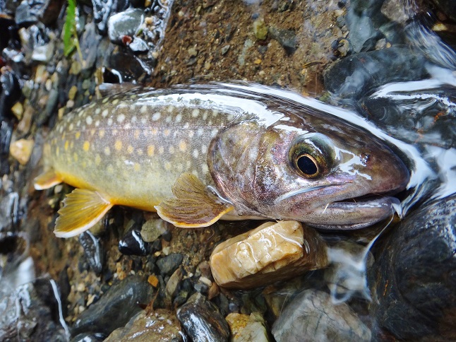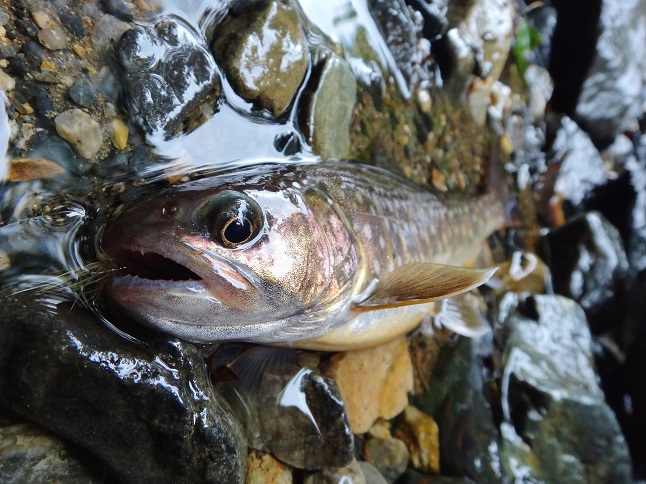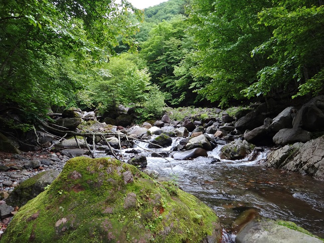 いつものように朝9時頃に着きましたが、当然先行者の車(笑) 仕方なく次の目的地に行こうと思ったらルアーマンが戻ってきたので、上流に行かせて頂きました♪ で、ある程度登ってから釣り始め・・・ |