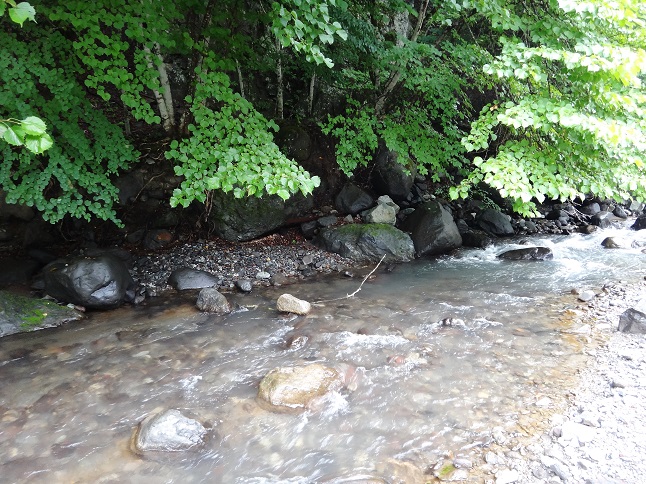 いつもよりチョイ早めの8:30に現着も、無情の先行者(涙) 小雨も降ってるし開けた渓でチョットだけ釣れればイイや、って事で転戦も・・・ 笹濁り!! |