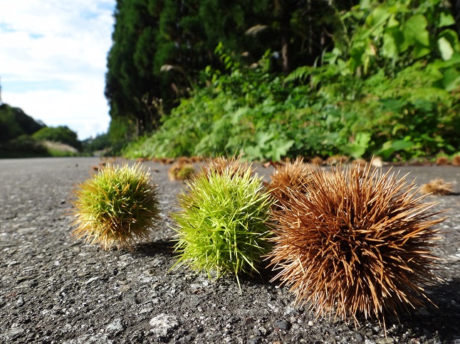 数年前、家族で水遊びした川は所々栗が落ちていて・・・ |