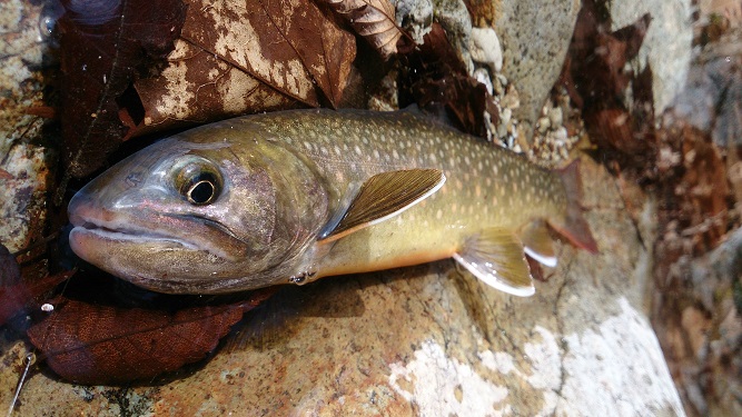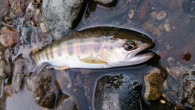 工事で濁り・立入禁止など、かなり苦戦しましたが・・・ 何とかヤマメも釣れてくれました(喜) しかし、デジカメを忘れたのはイタかった(笑) |