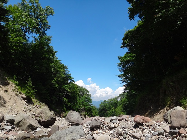 遅い梅雨明けと共に訪れた快晴の週末! T君と調査に行ってきました♪ 青い空に白い雲、森の緑も濃くなりスカッと爽やかに汗をかきます〜 |