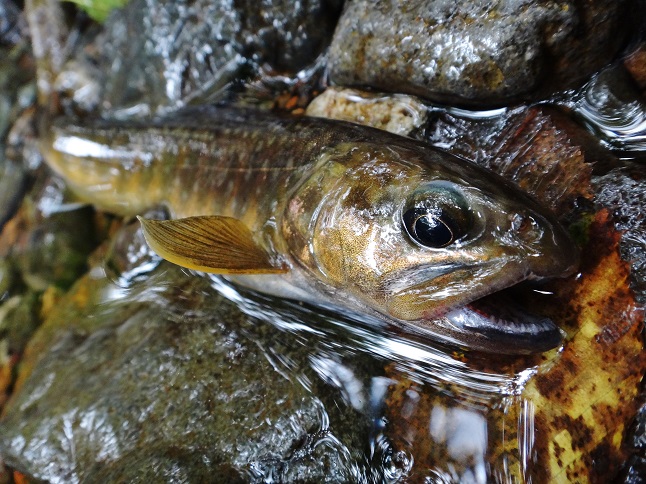 イワナもポツリポツリ釣れてくれて、もぉ満足(嬉) で、2日目は・・・ komさん、Mさん、T君の4人で熊棚のある沢へ! |