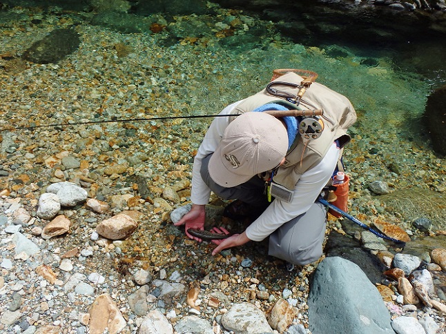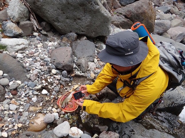 って、入渓早々ヒットしてるし 尺イワナ釣っちゃってるし、ルアーで爆釣です(驚)! |
