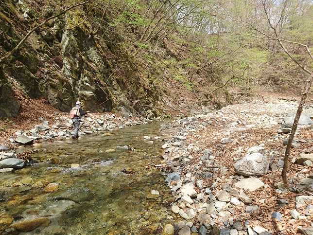 今年のGWは季節の進みがチョット遅いので、FLYには厳しいかと思ってましたが・・・ エキスパートのOさんの戦略で、いきなり有名河川に! |