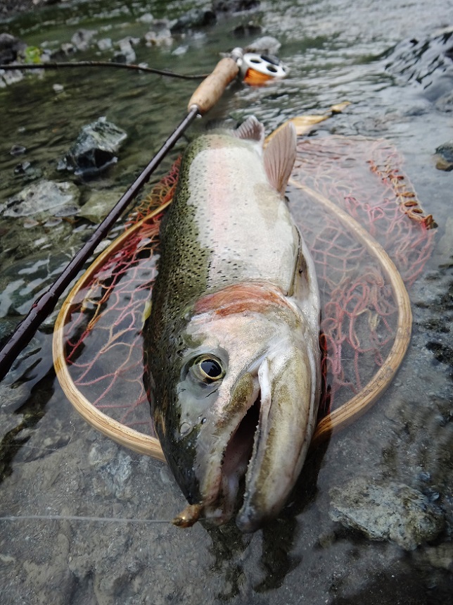 天気&気温は最悪で薄手のダウンと合羽でなんとか凌ぎましたが、 オショロコマに良型ニジマスが釣れて大満足です! おまけに紳士な釣り人にご案内頂き、また直ぐにでも釣りに行きたくなった北の大地でした♪ |