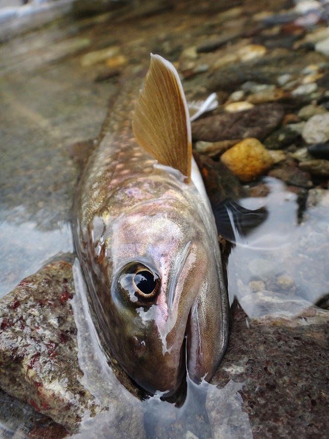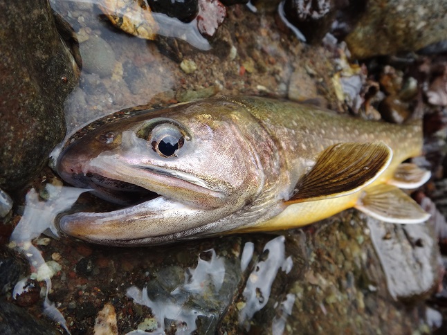 26.5cmが釣れてくれました♪ っても、ここも巨大クマ糞&頭ハネ天国でしたので 熊対策や、早起きしないと厳しいです(笑) |